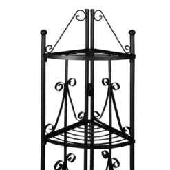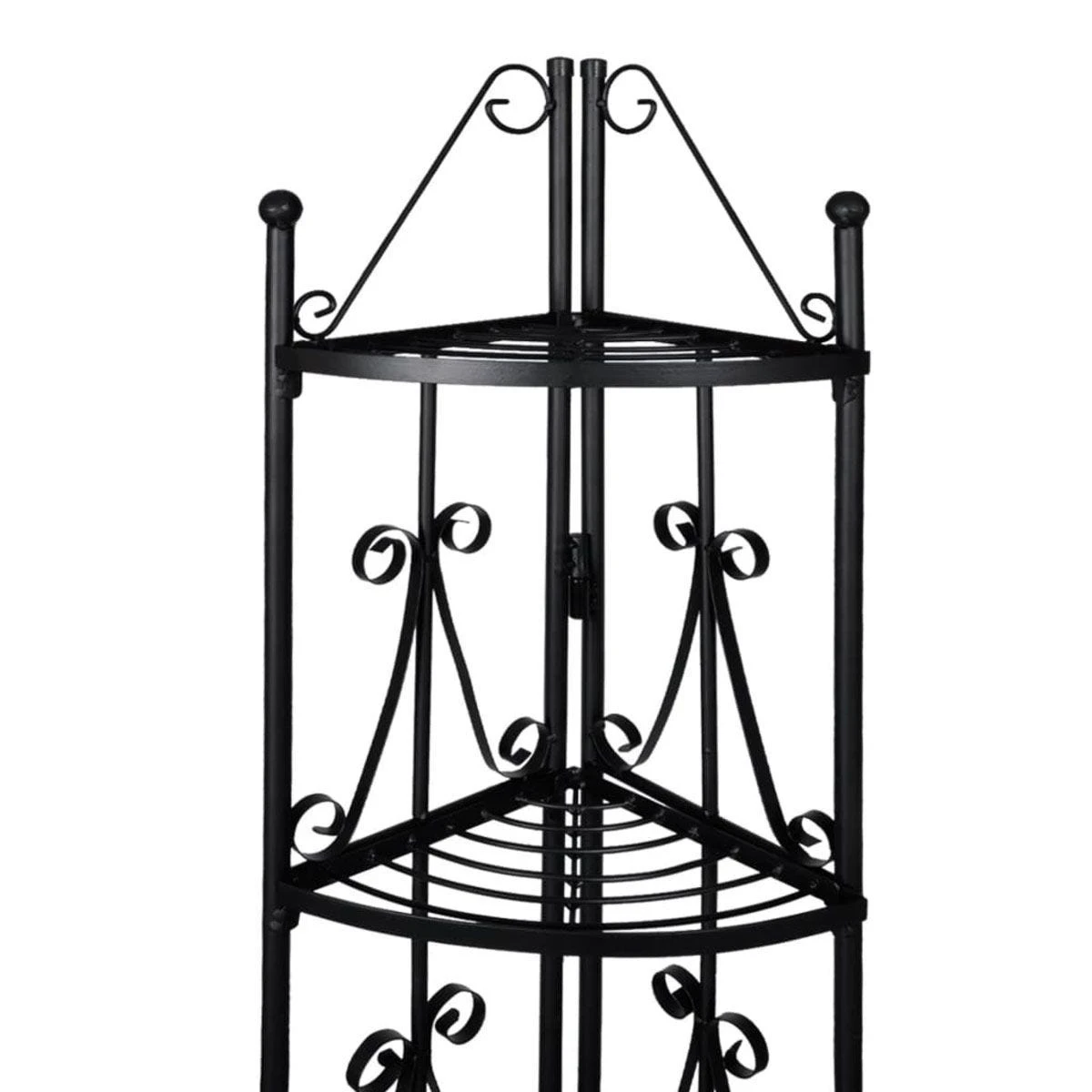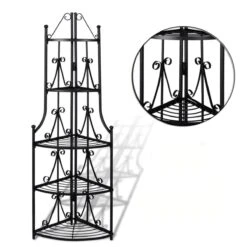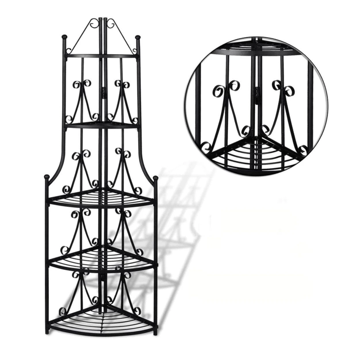 This black corner plant rack, with rose-patterned detailing, is a perfect choice to place your plants, which will be a real eye-catcher in any garden, patio or terrace. The 5-tier plant rack has a height of 160 cm, and could be perfectly placed against any wall corner. High quality steel makes this plant rack very durable, while powder coating enhances its longevity and makes it rust-proof.