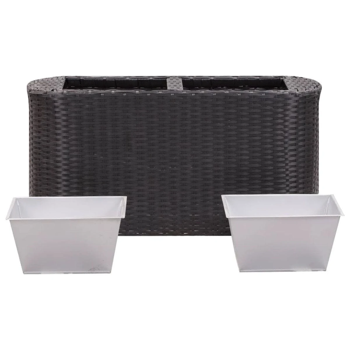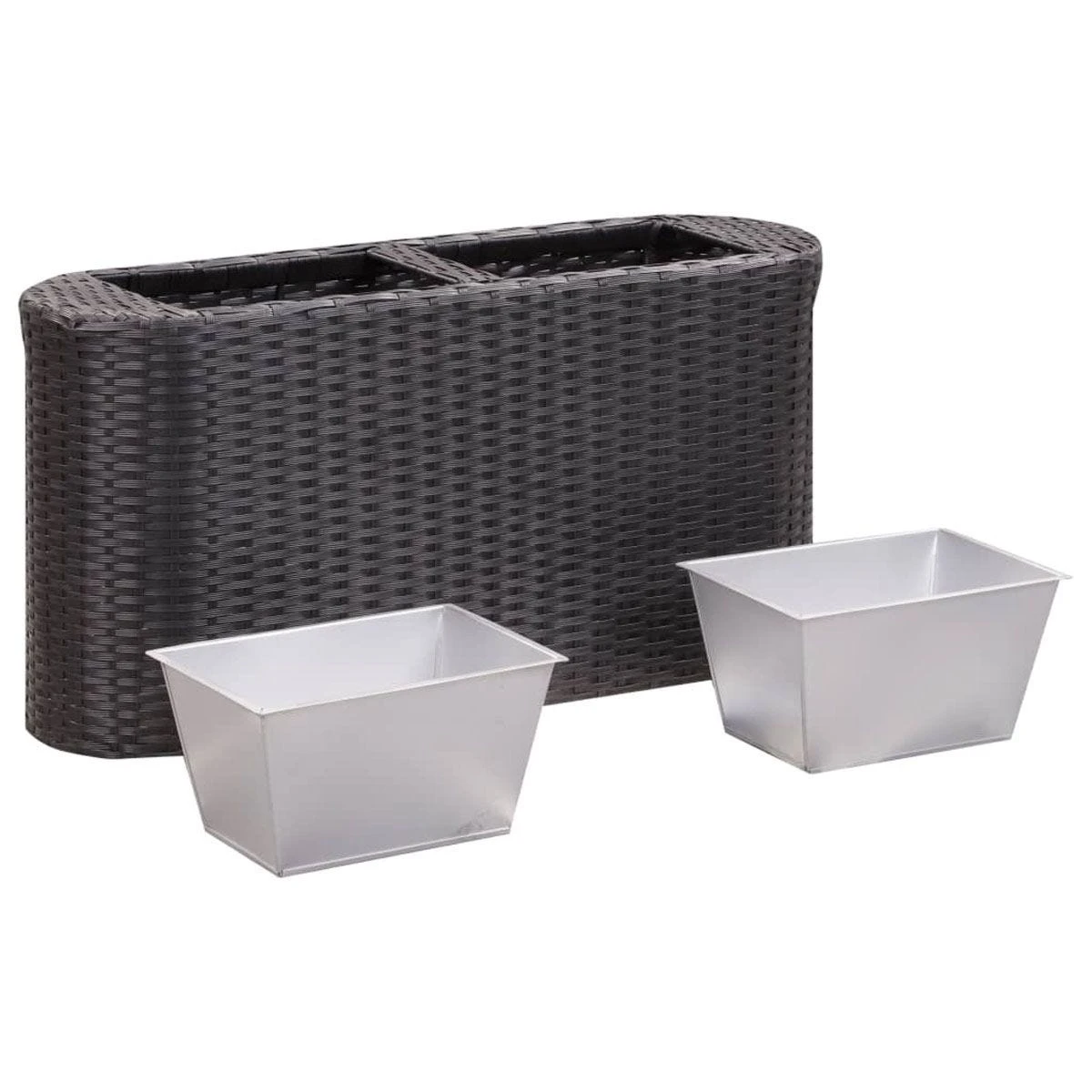 This lovely garden raised bed set consists of 2 zinc pots. Made of durable water-resistant rattan, this planter will be a perfect addition to your outdoor space. Its tight weaving structure produces a smooth finish and great stability. All kinds of lively green plants and flowers can be well placed into the pots. Get ready to have some fresh air from your garden, terrace and balcony with our beautiful planters! Delivery includes 2 zinc pots in the same size and 2 small support bars.