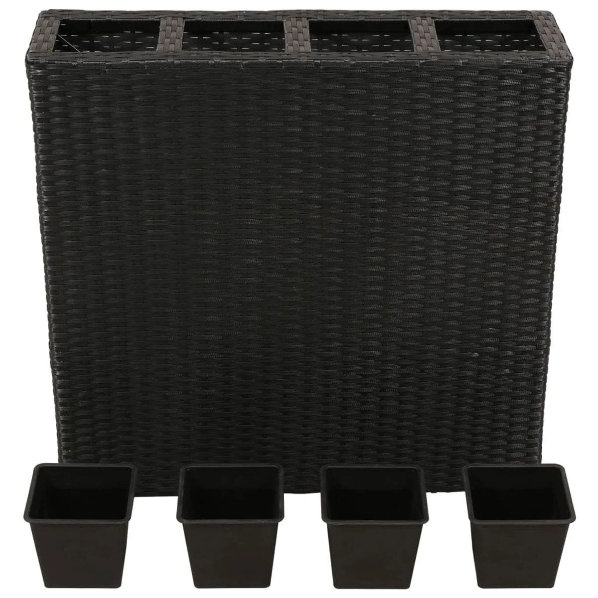 This lovely garden raised bed set consists of 1 rattan pot and 4 removable pots. Made of durable water-resistant rattan, this planter will be a perfect addition to your outdoor space. Its tight weaving structure produces a smooth finish and great stability. Equipped with 4 plastic containers inside, this planter set will ensure a long service life. All kinds of lively green plants and flowers can be well placed into the pots. Delivery includes 1 planter and 4 removable pots in the same size. Get ready to have some fresh air from your garden, terrace and balcony with our beautiful planters!