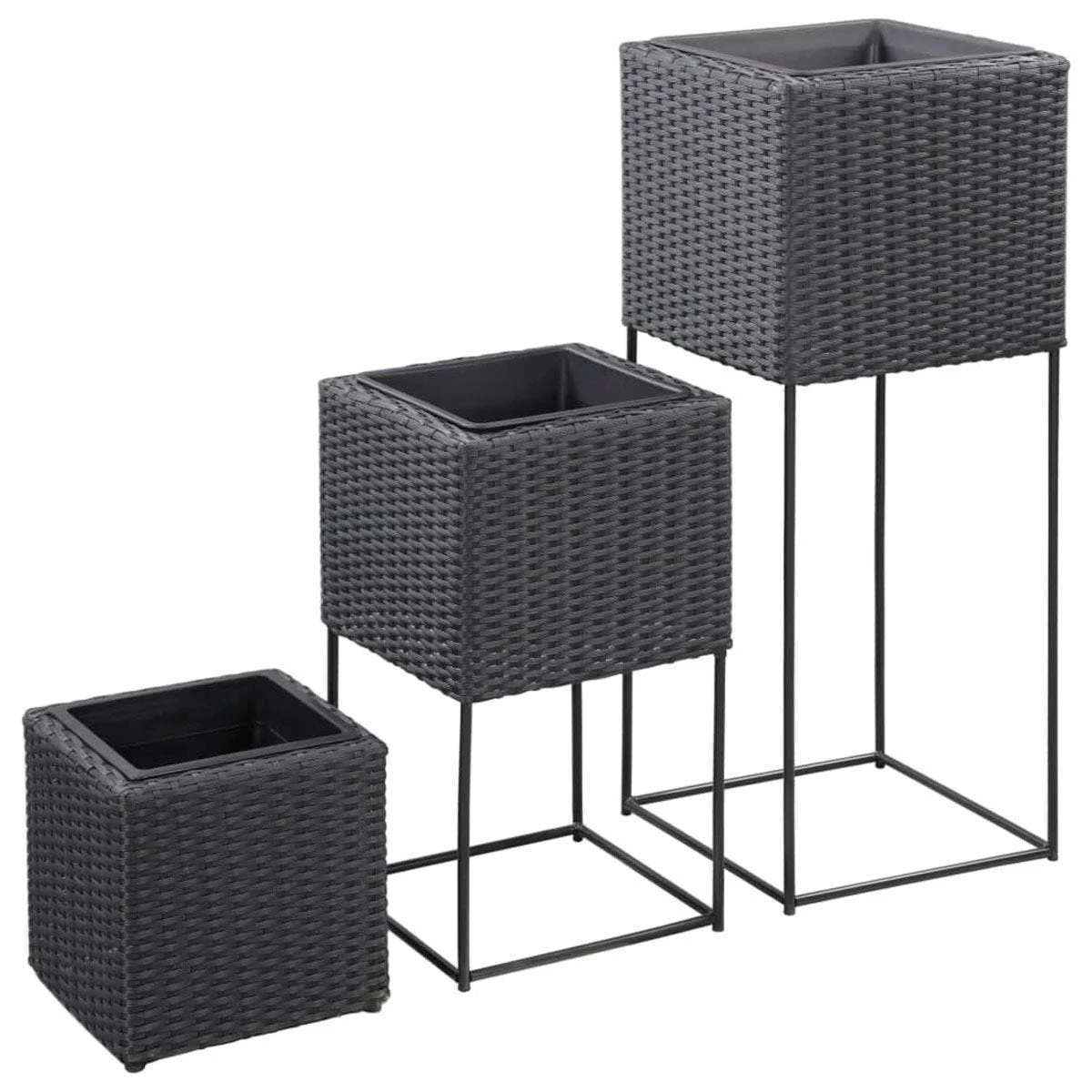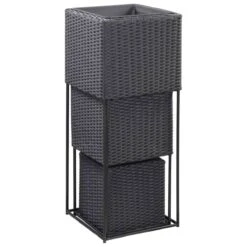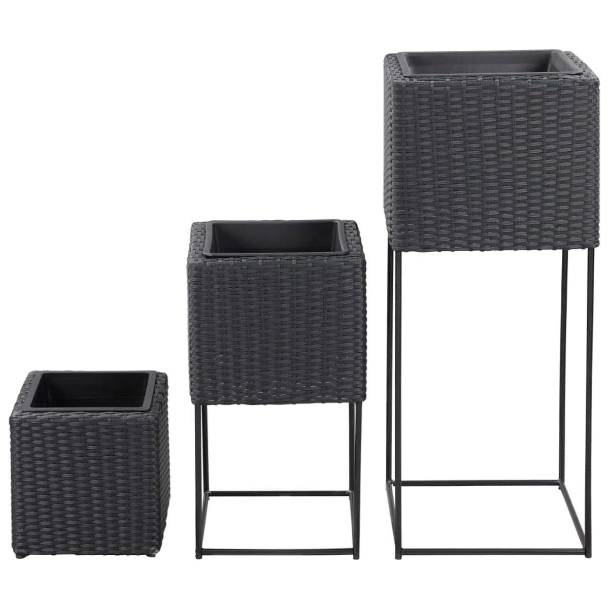 This lovely garden raised bed set consists of 3 poly rattan planter and 3 plastic pots. This planter is made of durable weather-resistant poly rattan, making it a perfect addition to your outdoor space. Its tight weaving structure produces a smooth finish, and the powder-coated steel legs ensure great stability. These planters in different sizes and height appear great next to each other and create a nice contrast with the green foliage. You can place all kinds of lively green plants and flowers in the pots. Additionally, the inside pots are removable. Get ready to have some fresh air from your garden, terrace and balcony with our beautiful planters!