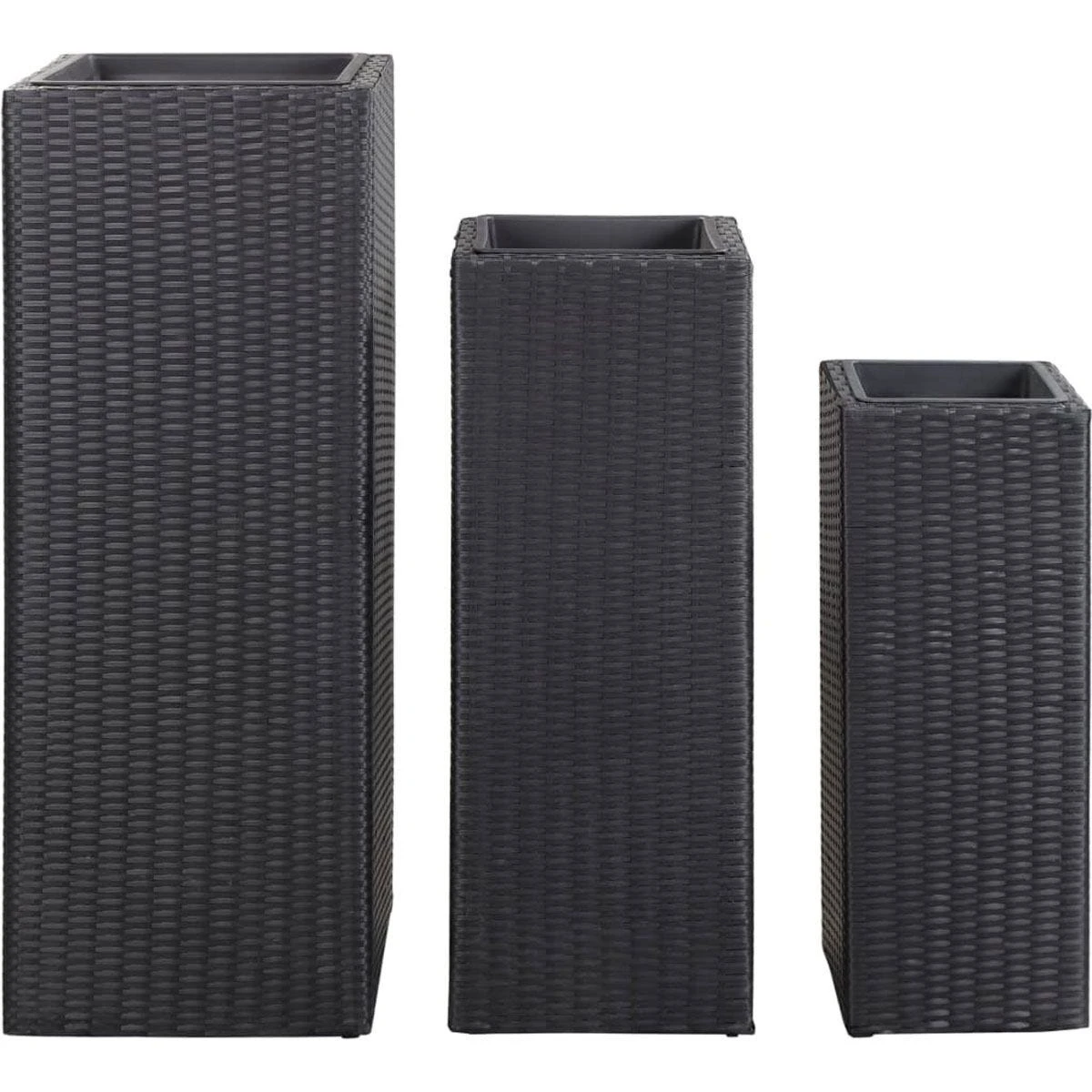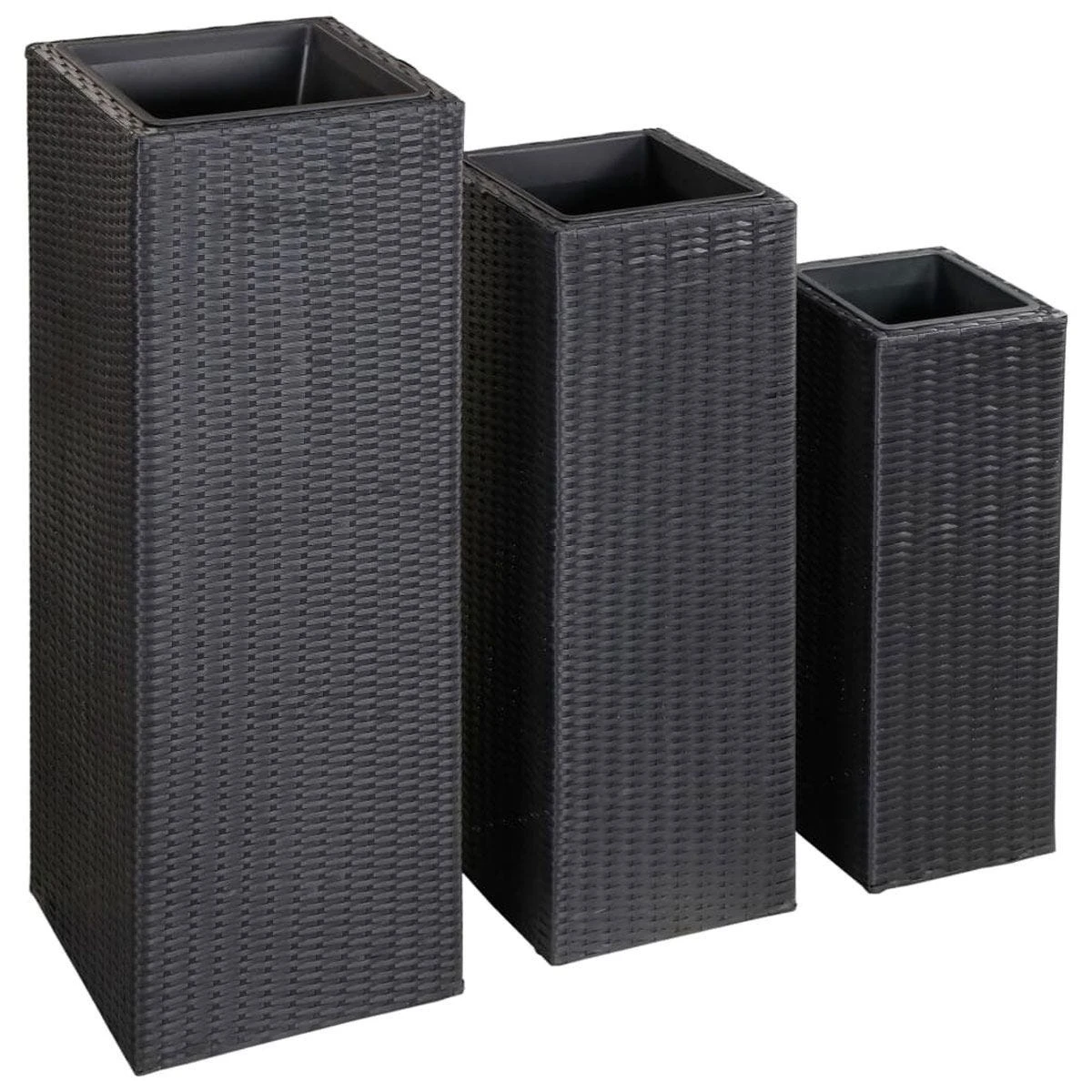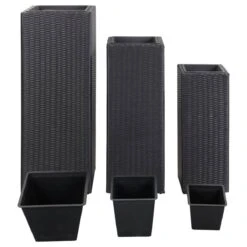 Grow and showcase flowers or plants in our poly rattan raised bed set in different sizes! The 3 planters allow you to get creative as well as arrange them whatever you’d like! These planters are made of weather-resistant poly rattan. Therefore, they are perfect for outdoor use. These patio planters are easy to clean with a damp cloth. These garden planters are equipped with a removable inner pot. Get ready to add a touch of green to your garden, terrace and balcony with our beautiful planters! Delivery includes 3 planter in different sizes and 3 pots.