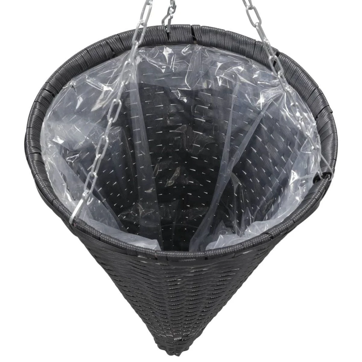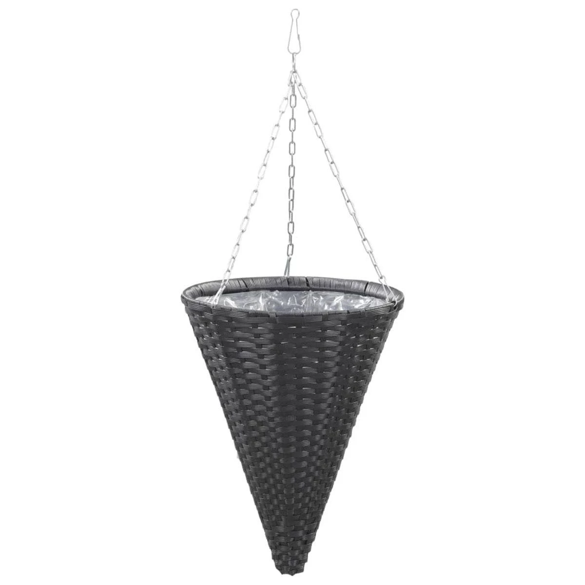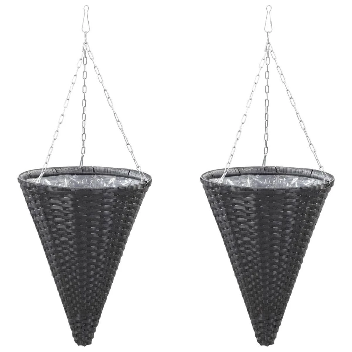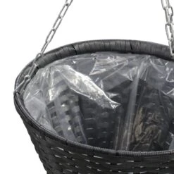 This poly rattan basket set, consisting of 2 hanging baskets and with plastic bag inside, will provide your plants with a beautiful place to flourish. Crafted from weather resistant and easy-to clean poly rattan, this beautiful hanging flower basket will ensure a long service life, which is ideal for gardens and balconies. These 2 baskets can not only be hung from the windows or some railings, but also easily be hung in any inside room.