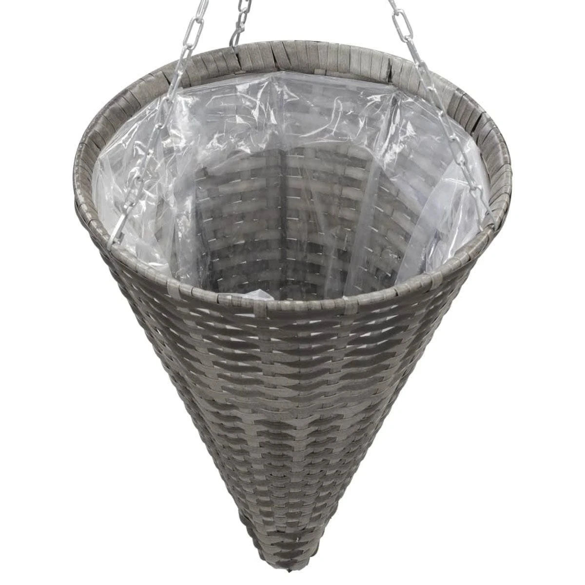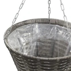 This poly rattan basket set, consisting of 2 hanging baskets and with plastic bag inside, will provide your plants with a beautiful place to flourish. Crafted from weather resistant and easy-to clean poly rattan, this beautiful hanging flower basket will ensure a long service life, which is ideal for gardens and balconies. These 2 baskets can not only be hung from the windows or some railings, but also easily be hung in any inside room.