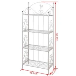 This white plant rack, with flower-patterned detailing, is a perfect choice to place your plants, which will be a real eye-catcher in any garden, patio or terrace. The 4-tier plant rack has a height of 153 cm. High quality steel makes this plant rack very durable, while powder coating makes it rust-proof and enhances its longevity.