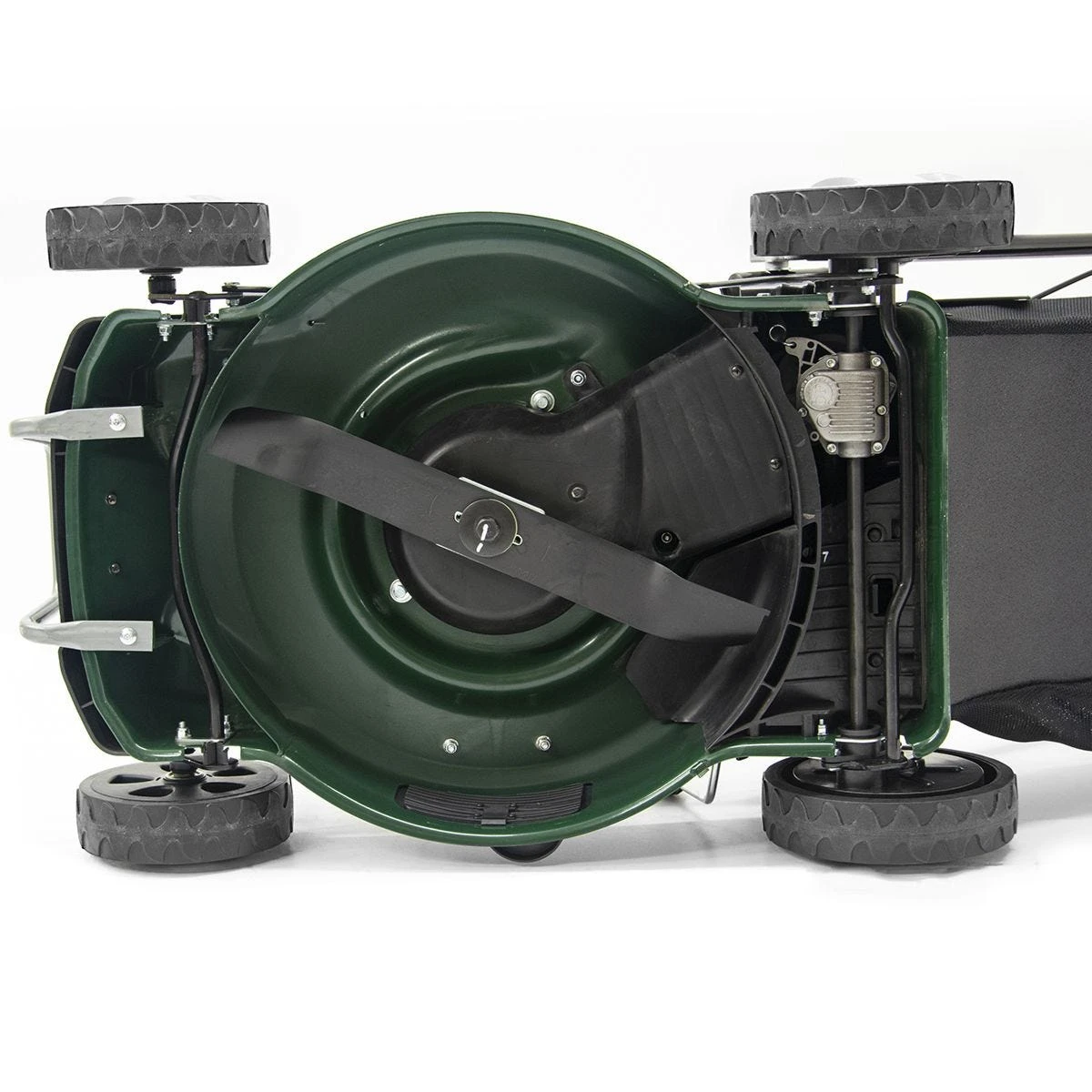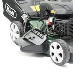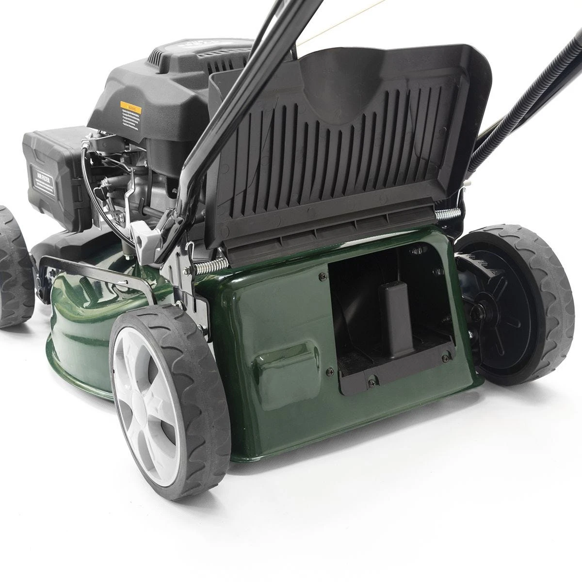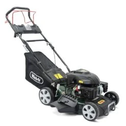 This lawnmower is powered by a fuel-efficient 141cc electric start petrol motor giving it the power and strength it needs to cope with all of your lawn maintenance needs. The simple single-point cutting height adjustment and 55 litre collection bag make this an easy to use machine and it’s great for smaller lawns with slopes and/or rough grass areas.
