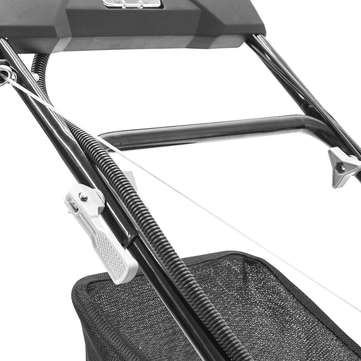 - Compact – With a compact 46cm cutting width, this mower is great for smaller lawns with slopes and rough grass areas.
