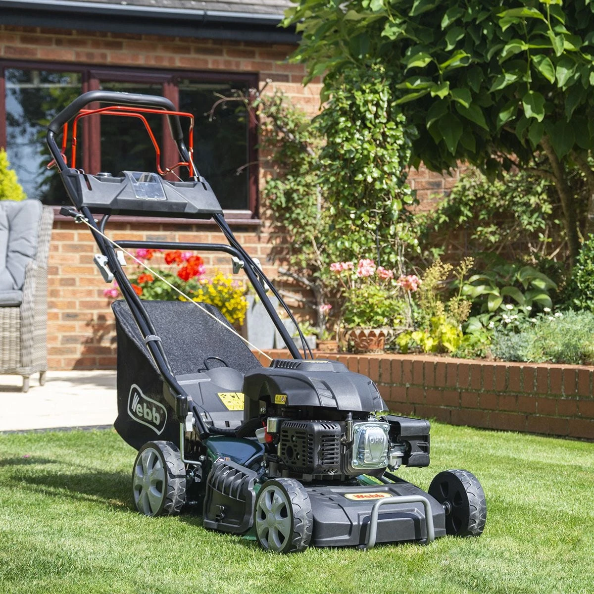 Take the effort out of mowing your lawn with this self propelled electric start petrol rotary lawnmower from Webb.