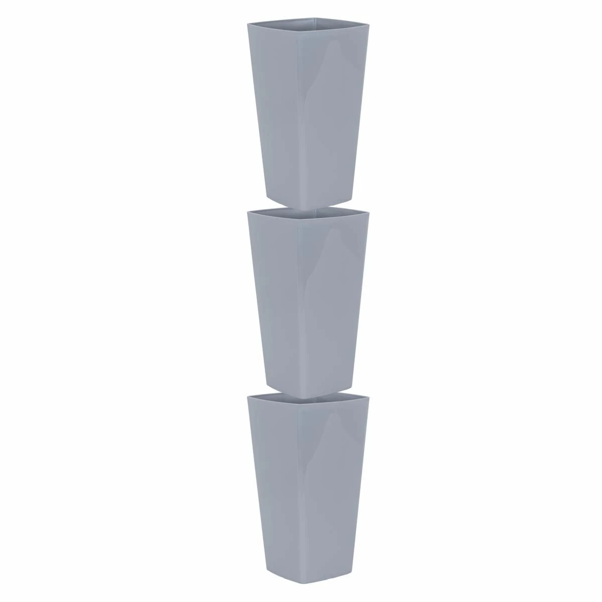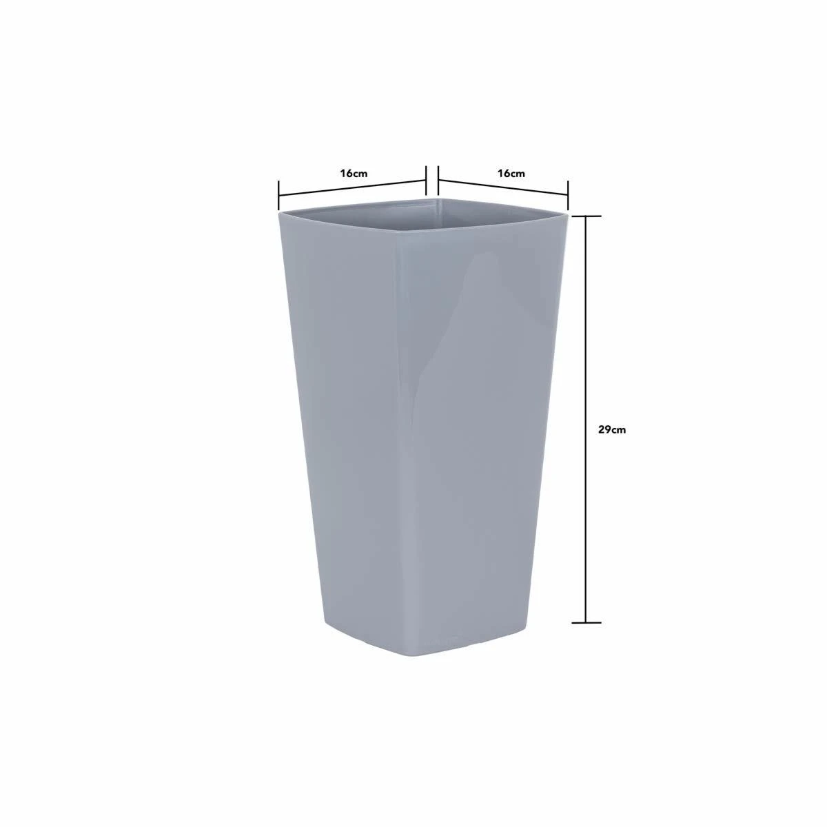 Set of 3 16cm Tall Square Studio Planter Covers in Cool Grey. Hide away unattractive grow pots in a contemporary high gloss plant pot