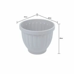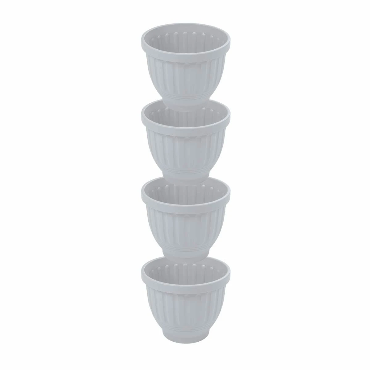 Set of 4 Etruscan 47cm Round Planters in Soft Grey. This planter is suitable for both indoor and outdoor use being weather resistant and lightweight.