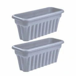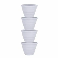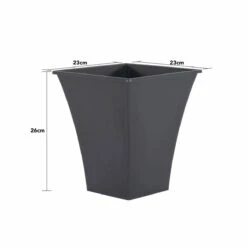 Set of 4 23cm Square Metallic Planters in Slate. This planter is suitable for both indoor and outdoor use being weather resistant and lightweight.