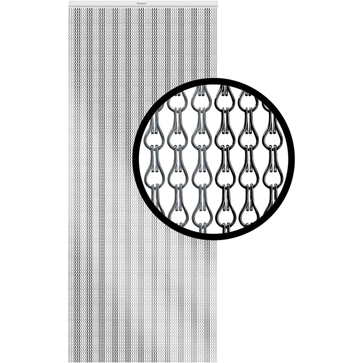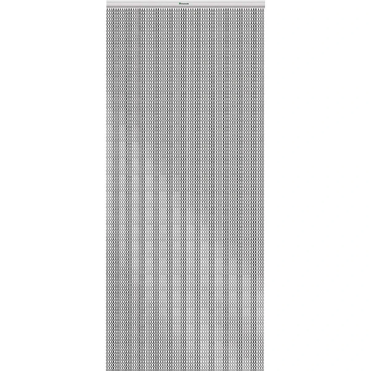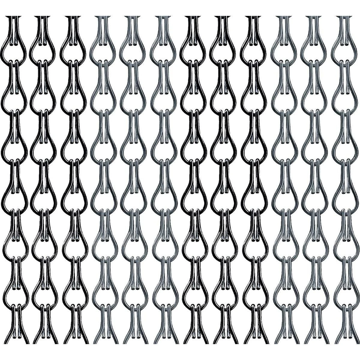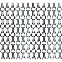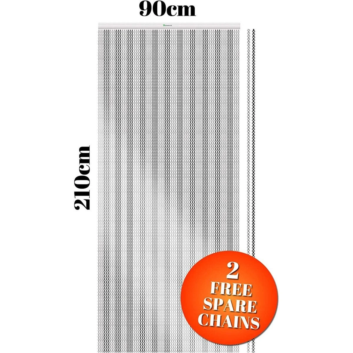 - Measurements This fly screen has a hanging rail of 90cm, a chain-link drop of 210cm and a link size of 12mm x 24mm. It has 69 chain links + 2 FREE spare! It also has a breaking strain of 23kg