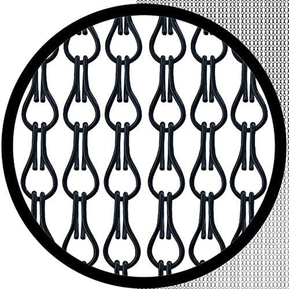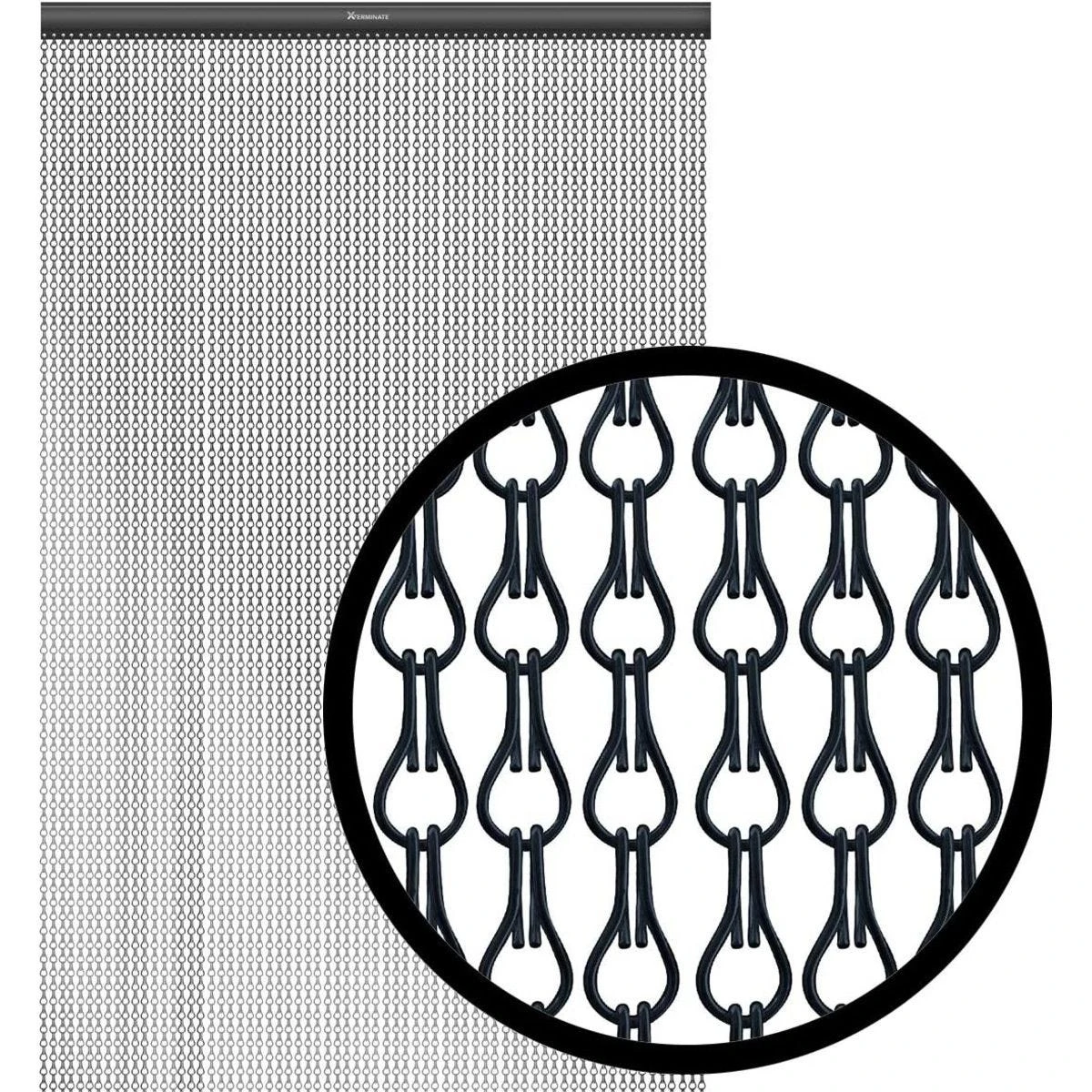 - Measurements This fly screen has a hanging rail of 90cm, a chain-link drop of 210cm and a link size of 12mm x 24mm. It has 69 chain links + 2 FREE spare! It also has a breaking strain of 23kg