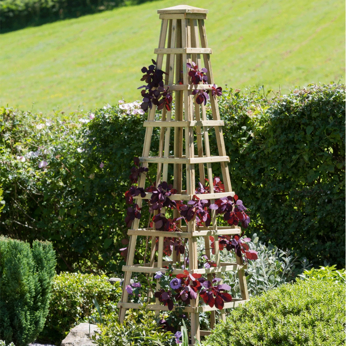 This all-year-round garden obelisk is an elegant structure that is perfect for growing climbing plants. It immediately adds a sense of height and style to any outdoor area and features a sturdy pyramid design that can be securely fitted into the ground or placed on a rockery or flowerbed. The timber is FSC certified, so you can be confident that it is both high quality and sourced responsibly, while the pressure-treated finish ensures it is built to last with a beautiful natural look that won’t fade for years.
